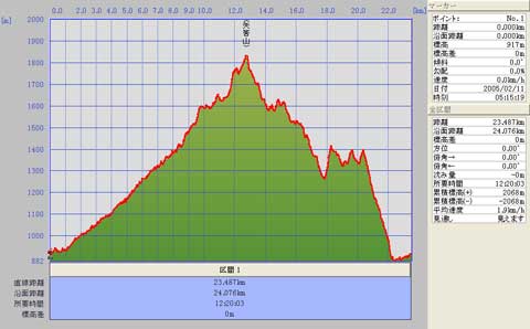 【距離】 累計歩行距離 24.620km 累計標高差 2069m