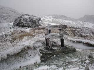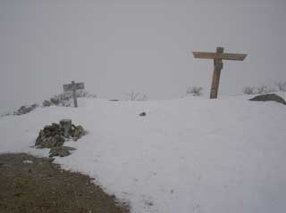 三嶺山頂 11:45 「マイナス9.4度 9mの西よりの風 ガス」