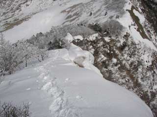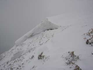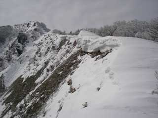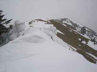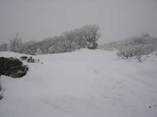 - ことに ホワイトアウト時には 牛の背付近は 広い尾根と二重山稜で無雪期のルートは雪の下で とても分かりにくい状況になります。