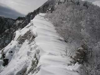 - 三嶺から牛の背まで 樹林限界を抜け出た 素晴らしく長い雪稜を楽しむことが出来ます。