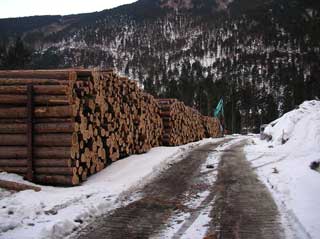 (この先 で 間伐材の集材、搬出と 治山復旧工事を行っていて 工事関係者と林業関係者が日曜日でも出てきて作業しているようだ。)