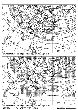 平成17年2月13日9時 地上天気図 平成17年2月13日9時 高層天気図 700hPa 850hPa