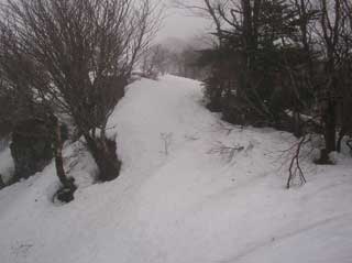 - この日の天候は 悪く 終日 視界のきかない中 雨 ミゾレ 雪と変化し、 気温上昇と 雪腐りに苦労しました。