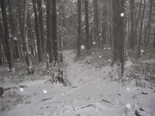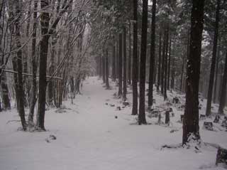 モノレールと二回ほど交差して 樹林帯の中のモノレール終点付近から 次第に 雪が多くなってきた。