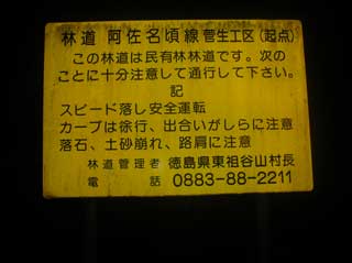 - ふるさと林道阿佐名頃線菅生工区は 平成16年秋 開通しているが 十七年二月現在 菅生 いやしの温泉郷より 約4km先で 治山復旧工事と 間伐材集材搬出作業を 行っている。休日も作業車が入り 重機の音がしていたので、くれぐれも これらの工事に邪魔にならないように 注意を払わなければなりません。