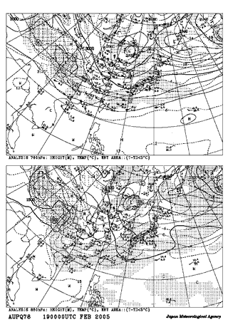 平成17年2月19日9時 地上天気図 平成17年2月19日9時 高層天気図 700hPa 850hPa