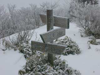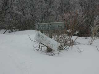 山頂は 標識がまだ出ている位の積雪量 雪は少ない。