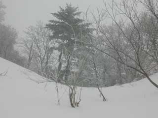 気持ちの良い 自然林の中 登っていくと 左から 夏道のある 北東尾根と合流すると すぐ 山頂だった。