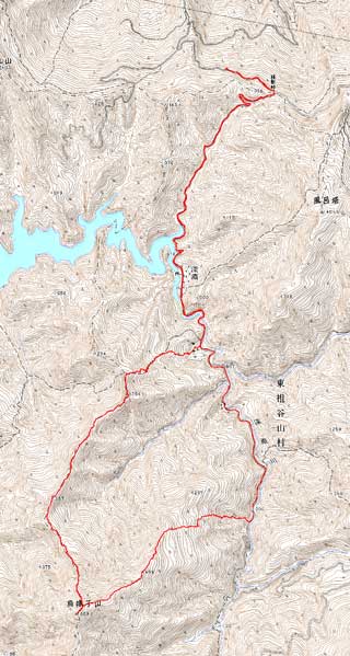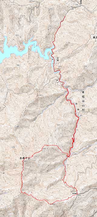 桟敷峠付近 財産区の建物 深淵集会所 深淵 最奥の民家 烏帽子山山頂 烏帽子と前烏帽子の縦走路 前烏帽子山頂 落合峠への縦走路 縦走路 落合峠付近 落合峠 矢筈山方面を見る