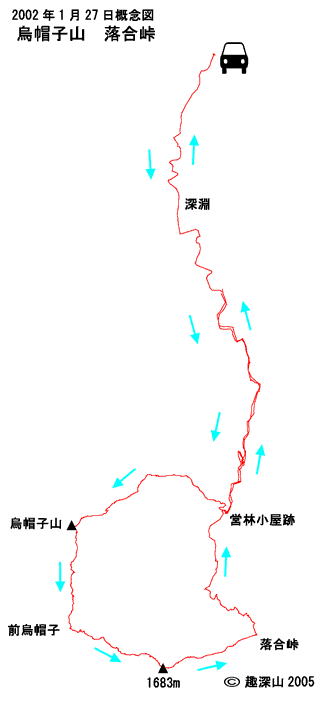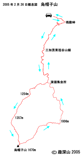 HOME > 山行記録 >積雪期 >烏帽子山二つの周回コース>平成17年2月26日と平成14年1月27日