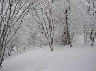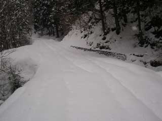 ここから 林道を歩く。また新たな新雪が更に 積もっていた。