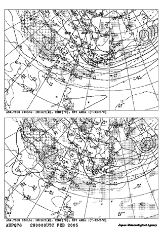 平成17年2月26日9時 地上天気図 平成17年2月26日9時 高層天気図 700hPa 850hPa