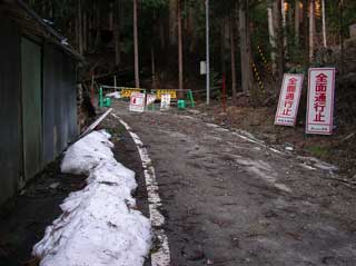 木地屋赤松線の木地屋では 平成15年3月から 通行止めが継続中で 固くチェーンで閉鎖されている。