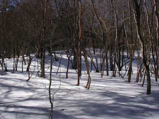 大体 夏道通しに登るが 雪が更に多くなって雪面が広がってきたあたりからは 急登を避け 緩やかな雪面を拾いながら やや 右寄りにルートを取る。この方が 夏道より 快適な自然林の中での登行が楽しめた。