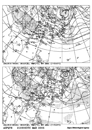 平成17年3月21日9時 地上天気図 平成17年3月21日9時 高層天気図 700hPa 850hPa