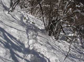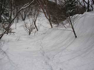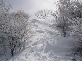 積雪は新雪で 高度を上げるに従って 急に増えてくる。