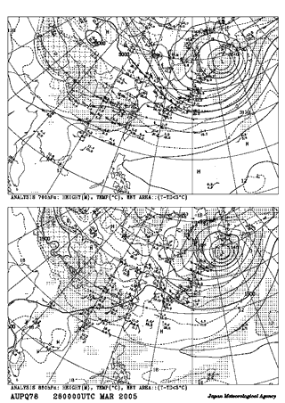 平成17年3月26日9時 地上天気図 平成17年3月26日9時 高層天気図 700hPa 850hPa