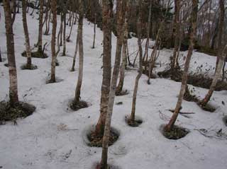- 残雪がブッシュを埋めていて 歩きやすかった。