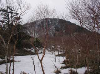 1806mピークの手前は 残雪の急な斜面だったが 一気に直登する。