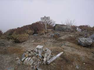 三嶺山頂 「プラス1.9度 5-6mの南風 ガス」