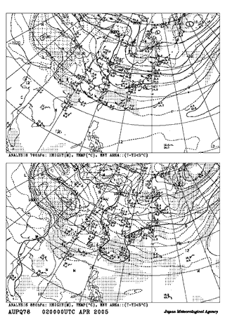 平成17年4月2日9時 地上天気図 平成17年4月2日9時 高層天気図 700hPa 850hPa
