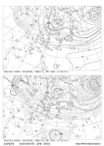 平成17年4月24日9時 地上天気図 平成17年4月24日9時 高層天気図 700hPa 850hPa