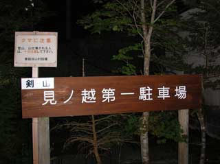 京柱峠で 登山準備し ヘッドランプをつけて 出発。