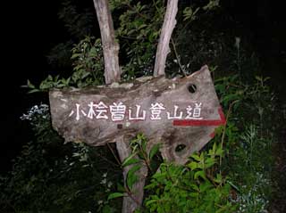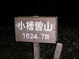 小檜曽山三角点に立ち寄る。今日最初の ピークであるが、 まだ暗い。
