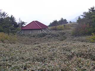 このあと 剣山頂ヒュッテに立ち寄り 小休止後 、足取り軽く、見ノ越へ下山する。