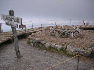 雷鳴が近くで聞こえ 時折 小雨の状態では 山頂で のんびりもできず、 丸石避難小屋まで 一気に下る。