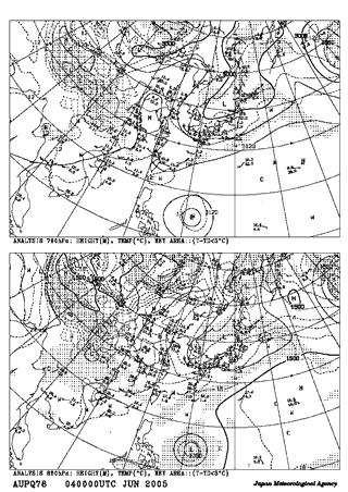 平成17年6月4日9時 地上天気図 平成17年6月4日9時 高層天気図 700hPa 850hPa