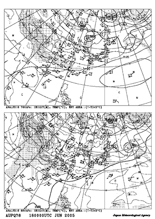 2005年6月18日 9:00地上天気図 2005年6月18日9:00高層天気図 700hpa 850hpa
