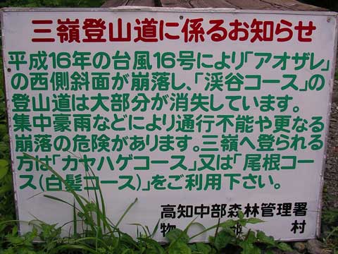 徳島県三好郡東祖谷山村 高知県香美郡物部村 ここで紹介している山々は、本州の著名山に比べると、登山道や指導標は未整備です。 それは自然が多く残っていて、この山域のいいところなのですが、この山域では、登山者は自己責任での行動が求められます。 コースタイムはご参考程度にしてください。 ●この山域への 交通機関 アクセス ●この山域の地形、地質と気象 ●剣山山頂の気象(平年値、極値) ●2004 10 02 三嶺 南西面 崩壊箇所詳細 ●二万五千分の一地図 「久保沼井」 「京上」 |