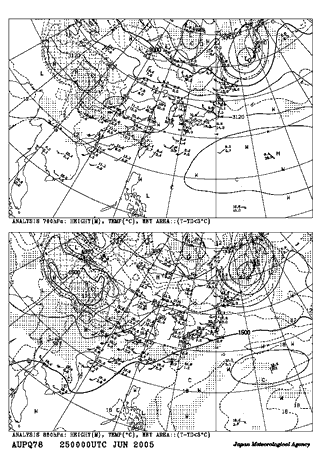 2005年6月25日 9:00地上天気図 2005年6月25日9:00高層天気図 700hpa 850hpa