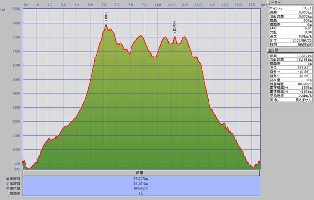 累計歩行距離 18.161km 累計標高差 1755m