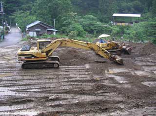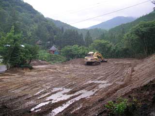 猪牧場の先の 斜面崩壊地は 大雨で 土砂が流れだしている。