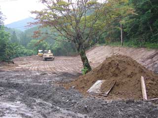 駐車場工事中 造成工事 この樹木は残すのだろうか 三嶺登山口利用適正化促進事業 三嶺林道豪雨時通行止め 通行止めの場所は大雨で斜面が動いて
