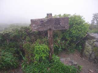 三嶺山頂 「14.7度 10-12m ガス 風雨 フスベヨリ谷側からの風雨が強い 」