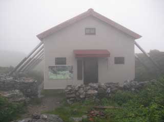 先週は 雨はあったが 風が弱かったので助かったが、 今回は 雨の上に 風が強い。 無理をせず とりあへず三嶺ヒュッテへもどり 休憩する。