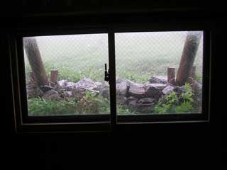 かなり土砂が流れていた三嶺山頂 風雨 三嶺ヒュッテ 三嶺ヒュッテの窓から外の風雨を見る