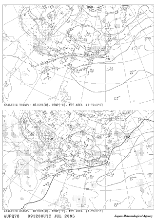 2005年7月9日 9:00地上天気図 2005年7月9日9:00高層天気図 700hpa 850hpa