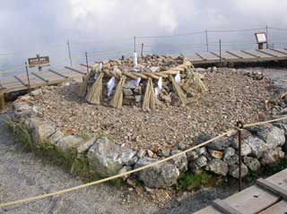 剣山 「22.1度 0.5-0.8m ガスが流れ 時折ガスが切れるが すぐにまたガス。 小屋の方で 人の声がするが それ以外は 静かな山頂だ。」