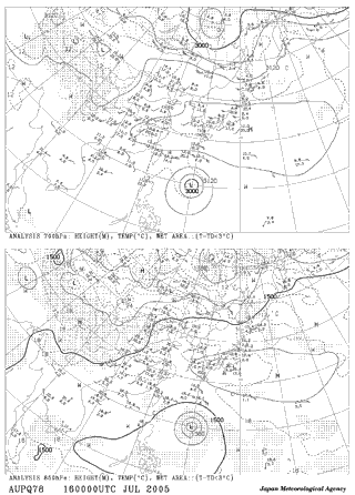2005年7月16日 9:00地上天気図 2005年7月16日9:00高層天気図 700hpa 850hpa