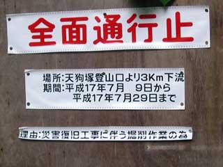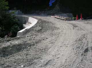 砂防堰堤付近の工事は 今日は休んでいて 通行止めは暫定的に解除されている。