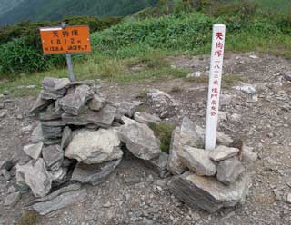 天狗塚山頂 「22.8度 0.2m 風弱い 曇り 三嶺は見える。 」