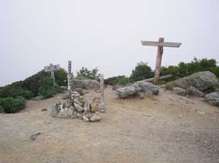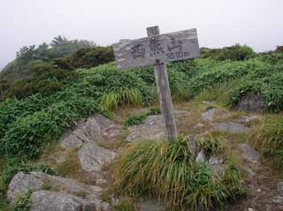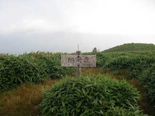 三嶺山頂 「19.4度 1-2m 北風 ガス 。 アブが多い 」