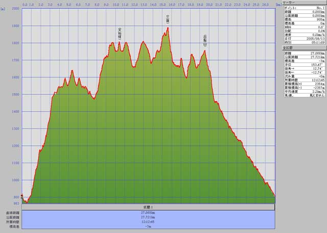累計歩行距離 27.721km 累計標高差 2354m
