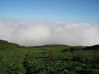 樹林帯を抜け、しばらく行くと 、急速に ガスは晴れて 下には 雲海が広がった。