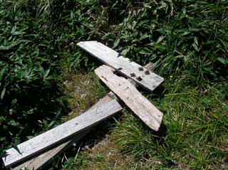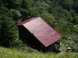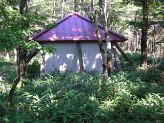 白髪避難小屋で 水場へ 往復する。上下22分。 今日の気温の上昇ぶり からすると 水の消費量が 予定より多くなることが予想され ここで給水しておかないと 渇水で苦しい縦走になるのが、予想される。しかし、水が満タンになり ずっしり重い荷になる。