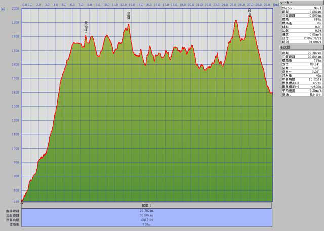 【etrex-legend-J で計測】 累計沿面歩行距離 30.584km 累積標高差 +3293m